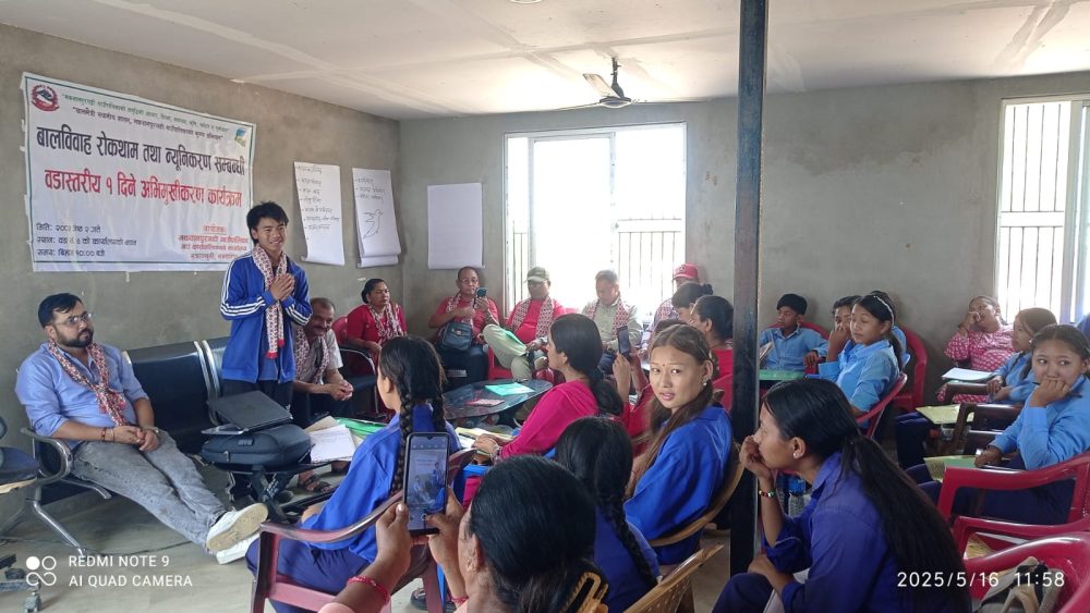 बालविवाह रोकथाम तथा न्यूनिकरण सम्बन्धी वडास्तरिय अभिमुखीकरण कार्यक्रममा सहभागी बालबालिका तथा सरोकारवाला ।