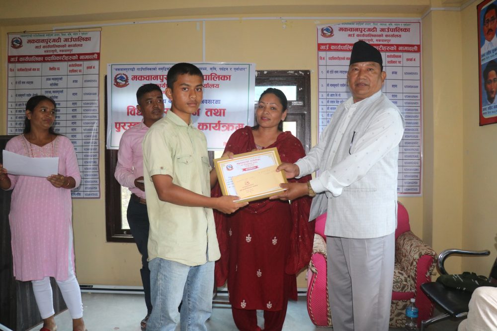 बालबालिकालाई प्रोत्साहन तथा हौसला अभिवृद्घिका लागि पालिकाका तर्फबाट पुरस्कृत गरिँदै ।